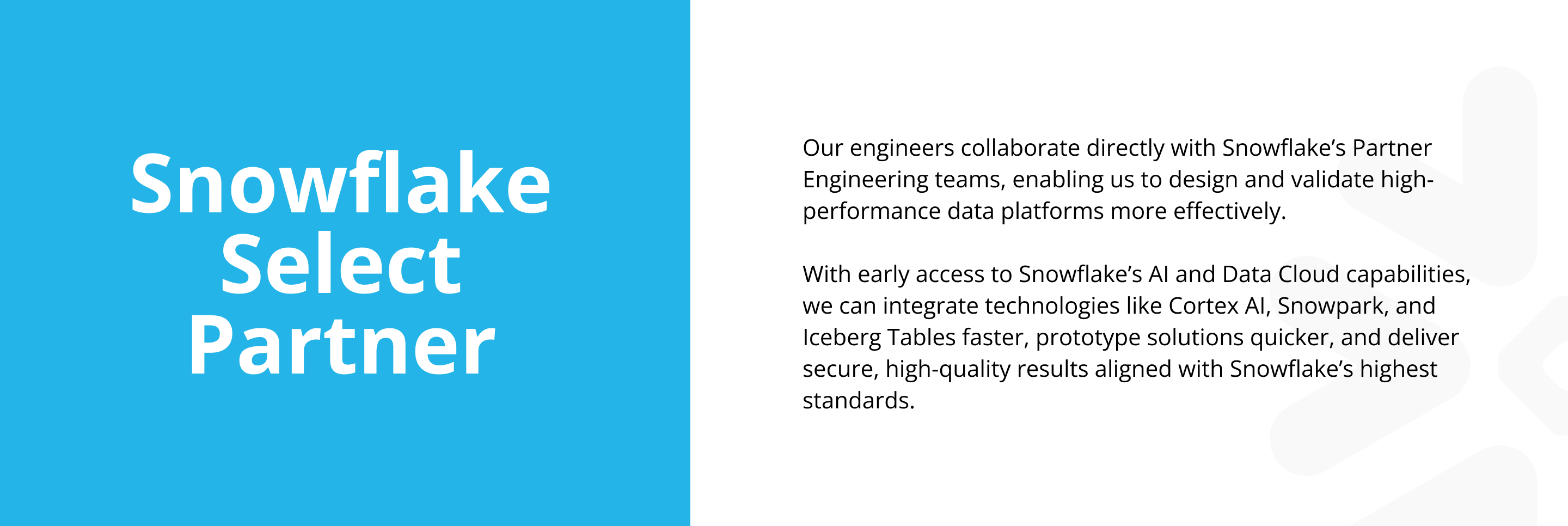 Our Snowflake cost optimization engagements begin with a structured audit of your environment: query patterns, warehouse sizing, clustering keys, transformation logic, and spend by workload. We identify the highest-impact changes, prioritize them by effort versus return, and implement them. Snowflake performance optimization runs in parallel: faster queries mean smaller virtual warehouses and lower bills. Clients who engage us for Snowflake cost optimization typically see infrastructure cost reductions of up to 70%, without sacrificing query performance.