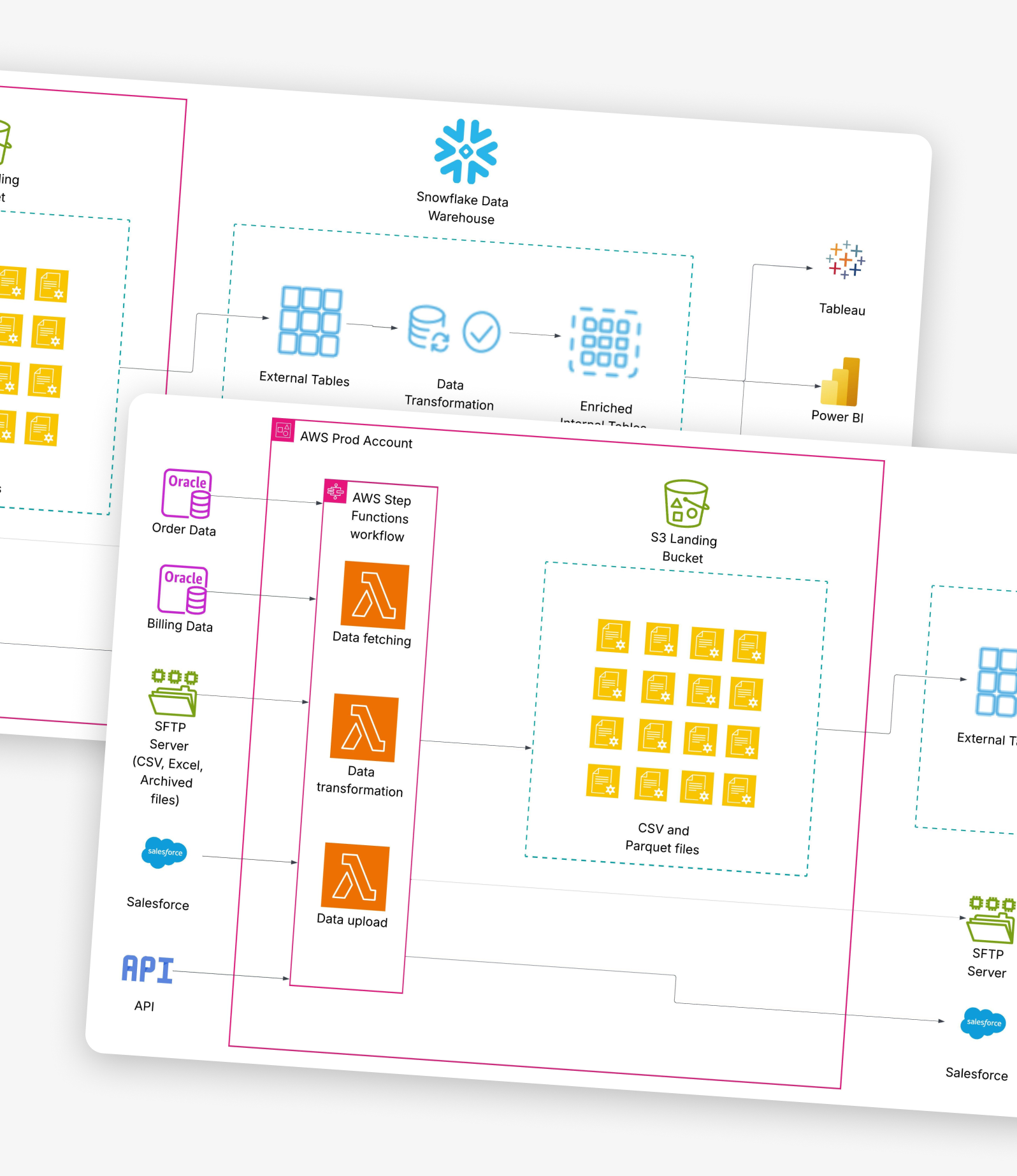 We build production-grade Snowflake data engineering infrastructure that connects your Snowflake environment to your full data ecosystem. Our Snowflake development services cover the complete pipeline layer: Snowflake dbt integration for transformation and testing, Snowflake Fivetran connector setup for automated ingestion, Kafka, Airflow, AWS Glue, and custom ingestion code where needed. For organizations already running Snowflake dbt integration or Snowflake Fivetran connector workflows, we audit, optimize, and extend existing pipelines rather than replacing what's working.